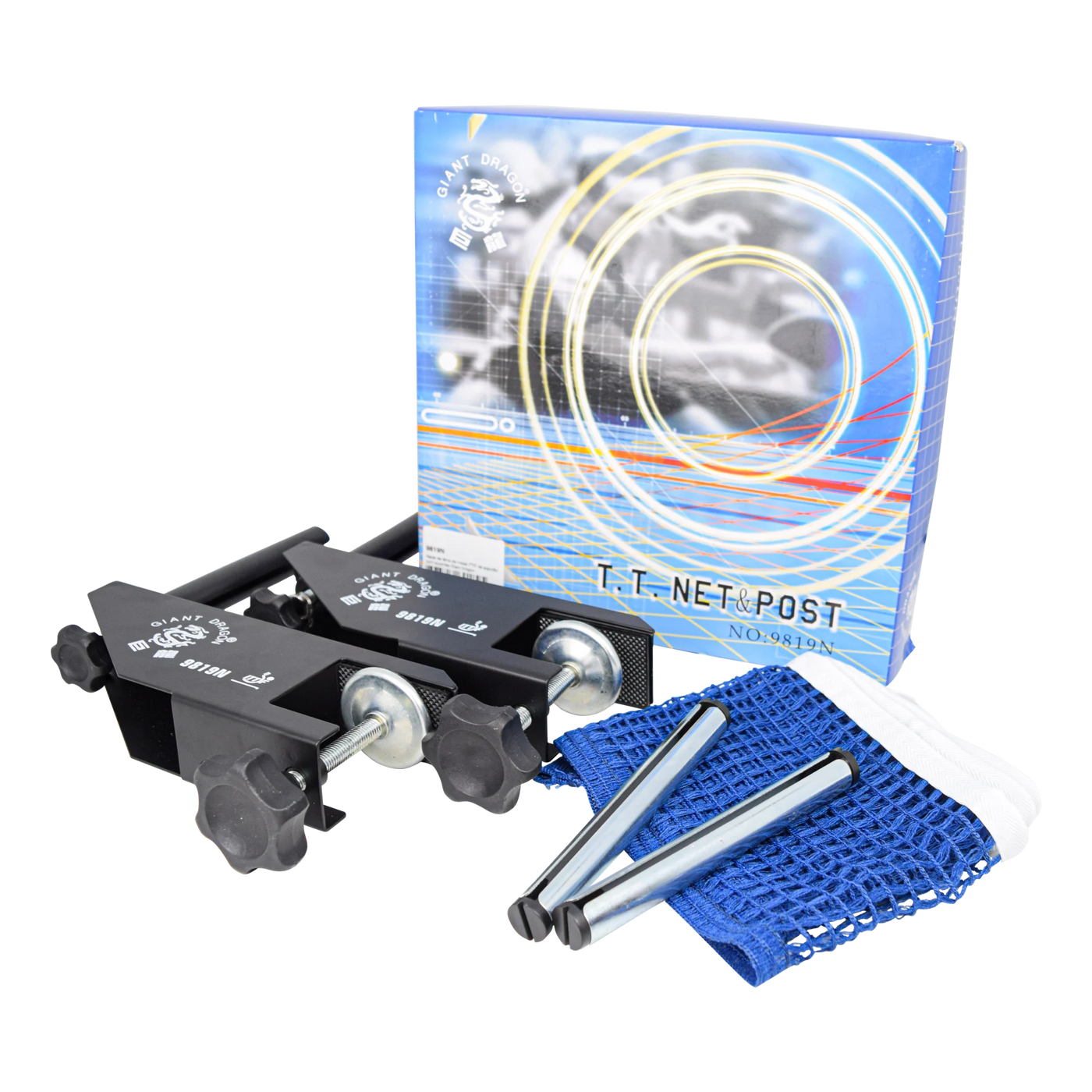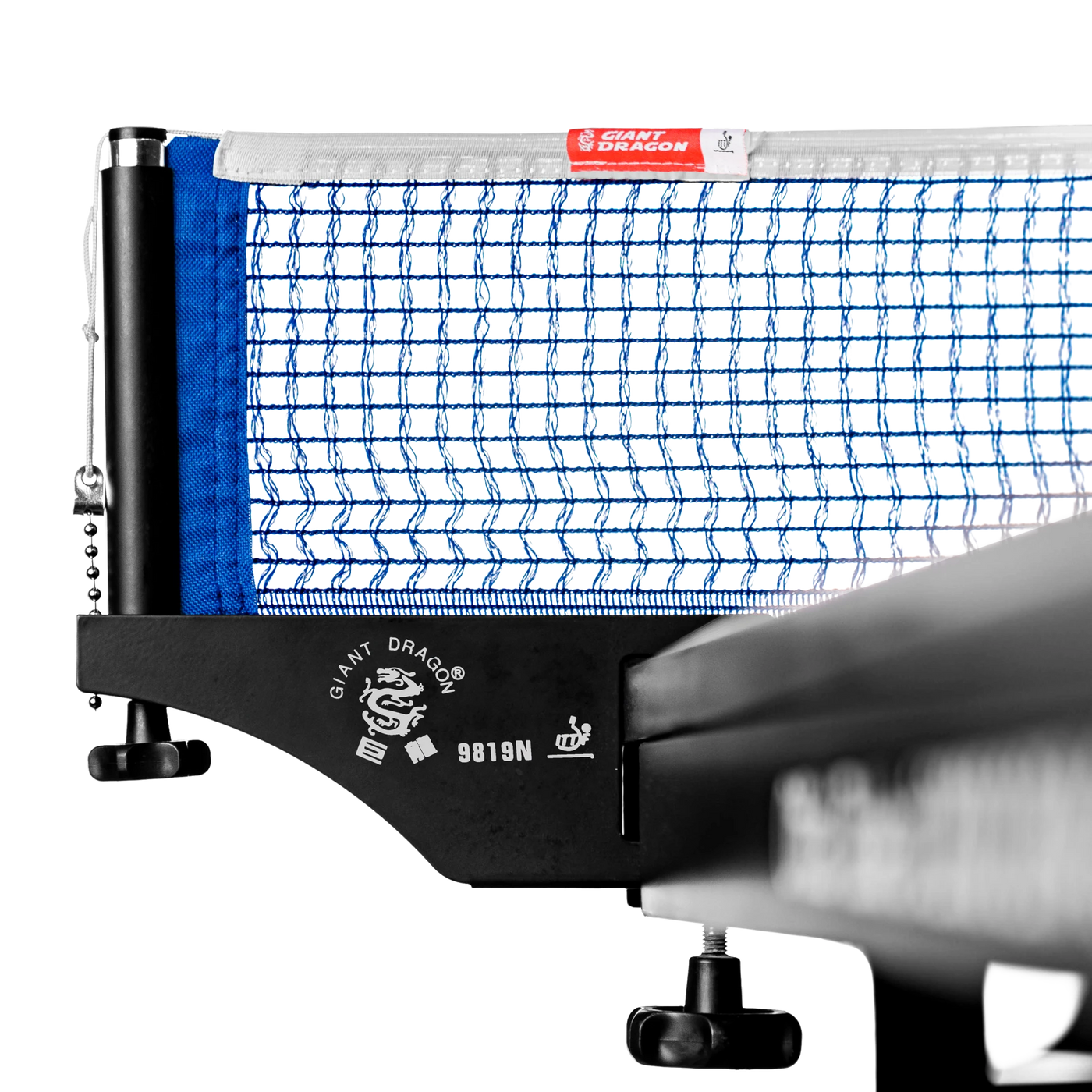 Rede profissional Giant Dragon feita em algodão resistente, com suporte rosqueável em ferro com pintura epóxi anticorrosiva. Possui medidas oficiais (182,5 cm x 15 cm), faixa superior de 15 mm e sistema de tensionamento por barbantes. Compatível com mesas de até 4 cm de espessura. Acompanha régua para medição e ajuste de altura. Aprovada pela ITTF, ideal para treinos técnicos, competições e uso em clubes, escolas ou residências. Produto oficial de uma das marcas líderes no tênis de mesa mundial.